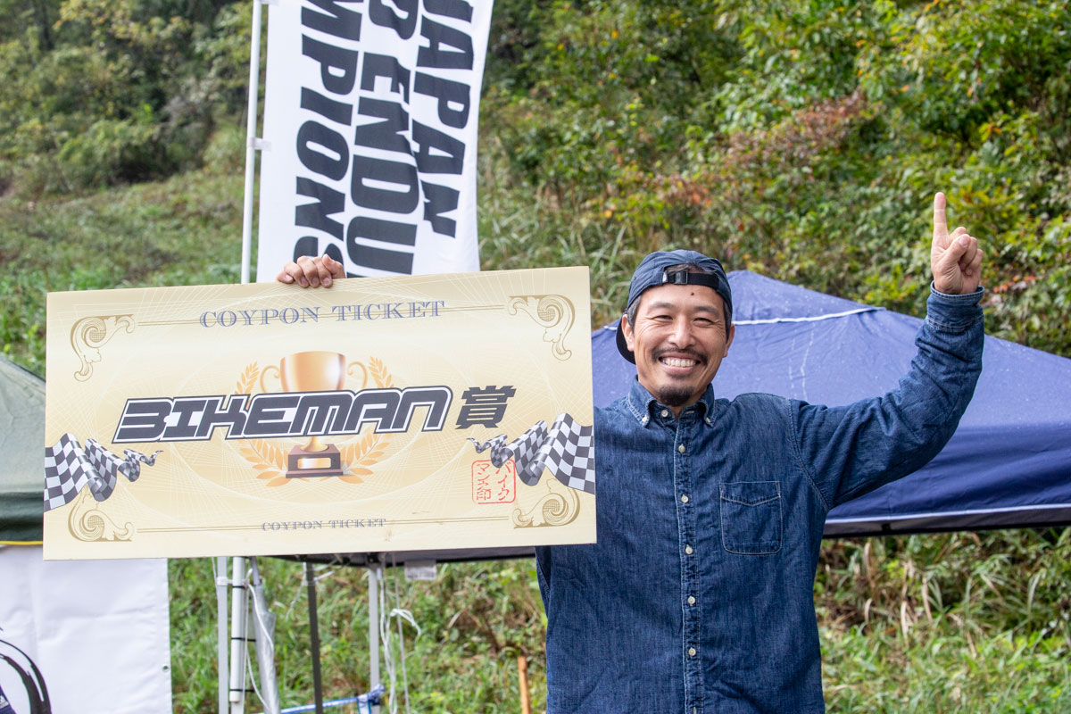 BIKEMANではG-NETシリーズに協賛しており、最後にチェッカーを受けた大西茂雄選手にバイクマンWEBSHOPで利用できる10,000円分のクーポンが授与された。