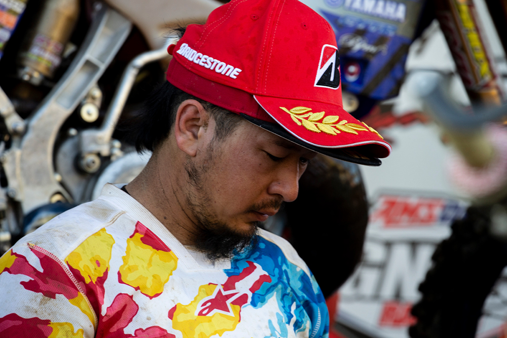 スポット参戦が話題となったモトクロスのトップライダー成田亮は、1周目の八犬士クライムで登り切れずタイムロス。かなり差が開いたと思われたが、ペースを落とすことなく7周目には3位に浮上。モトクロスに似たハイスピードコースに成田の速さや技術が光った。