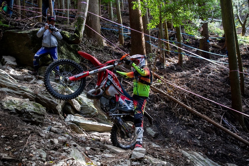 韓国チャンピオンのジェホンをアテンドしたのは水上泰佑。韓国遠征で仲良くなり、日本での移動やマシンのサポートを行った。なお、マシンは山田礼人が提供したGASGAS EC300にジェホンが持ち込んだハンドルやレバー、シートなどを取り付けたもの。