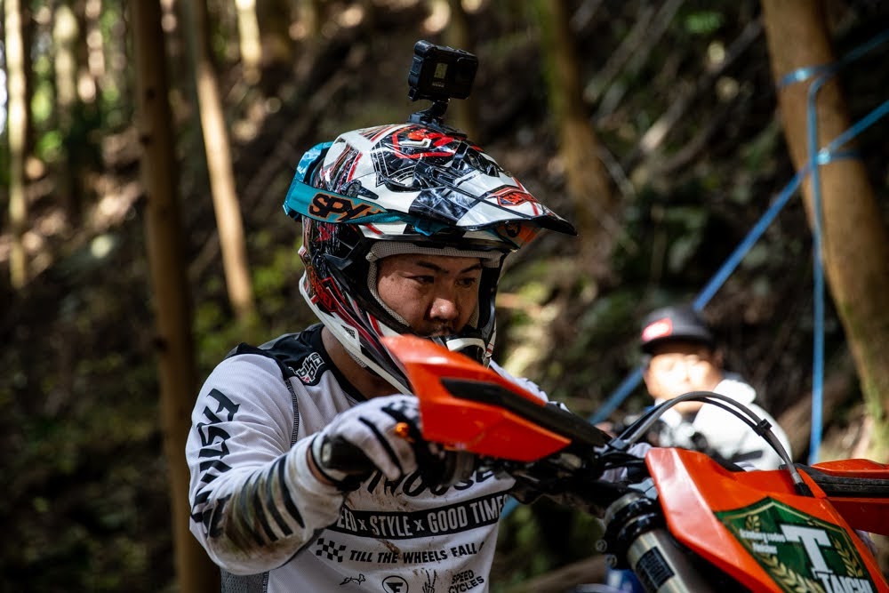 前半のヤマ場「K猫の細道」をトップで登頂すると、昨年よりも丸太の数が激増した「倒木祭りMAX」も難なくクリア。その後誰にも背中を見せずにゴールに辿り着いた。なんとタイムは2時間5分34秒。昨年は4時間かかって2/3しか進めなかったコースを、半分の時間で完走してしまった。いくら全体的なコース難易度が下がっていたとはいえ、これは藤原が一年間で圧倒的に成長したことの証明に他ならないだろう。そしてそれはテクニック的なものではなく、マシンの作り込みであったり、ハードエンデューロの経験値を積んできた、という意味なのだ。