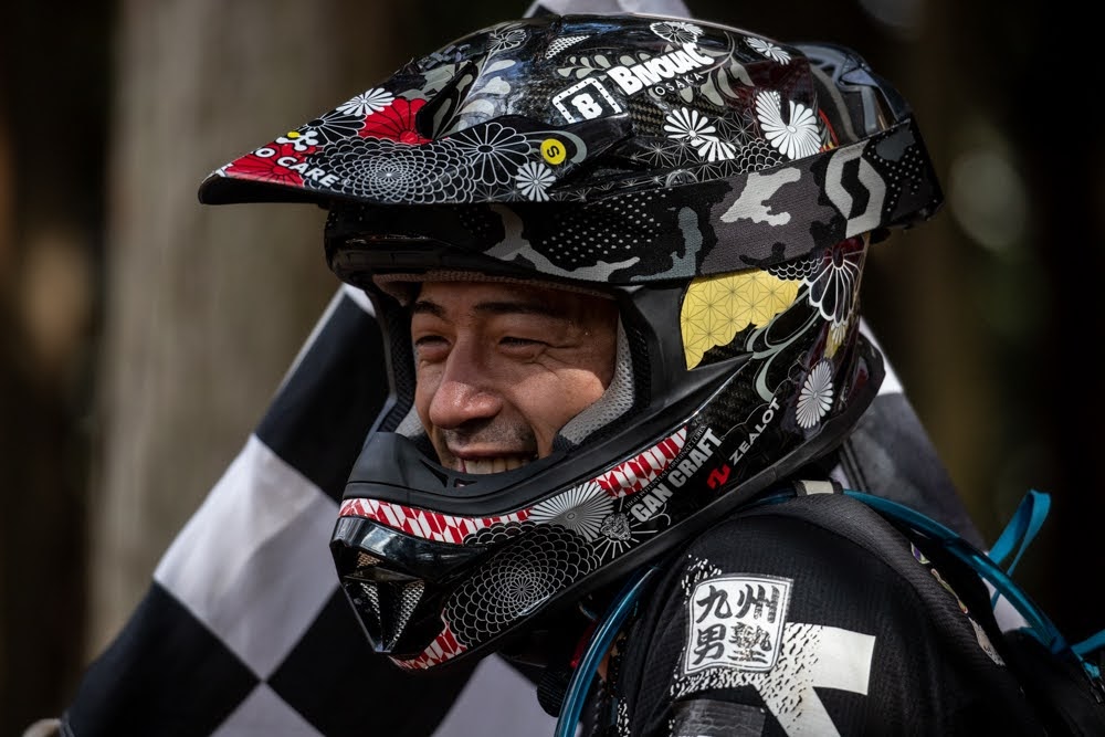 「去年に比べてだいぶ土が固められていて走りやすかったですね。ただコースが長かったので、しんどいレースでした。特に新しく追加された沢はまだ固められてなくて、到着したのも僕が一人目だったので、抜けるのにとても苦労しました。でもまだ余裕がありますので、もう2つくらいCPがあっても走り切れたと思います。後半の沢で2番手を走るジェホン選手の走りが見えるタイミングがあったのですが、正直驚きました。モトクロス上がりのライダーと聞いていたのですが、低速の扱いもとても上手でした。少し焦ってペースアップしたくらいです。
