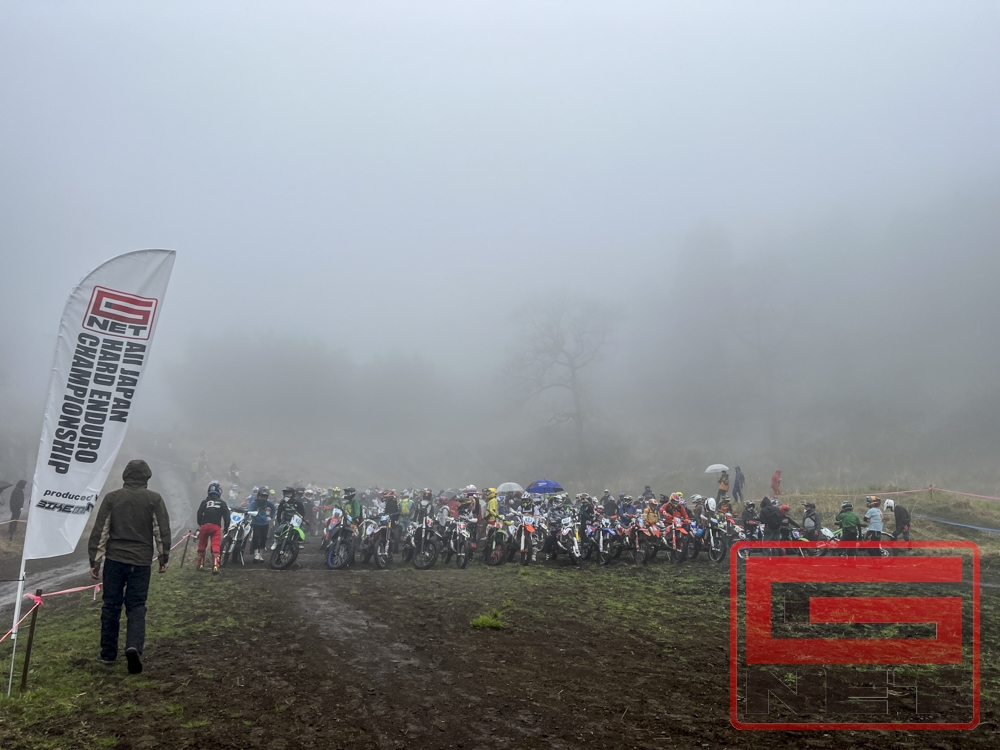 HINO HARD ENDUROは土曜日にミディアムクラス、日曜日にG-NETクラスと2デイズ開催だが、土曜日はあいにくの雨模様。ミディアムクラスではミニモトやレディースも走るためコースの難所がいくつかカットされたが、日曜日は一切コースカットなし。路面コンディション的にも精神的にもタフなレースになることが予想された。