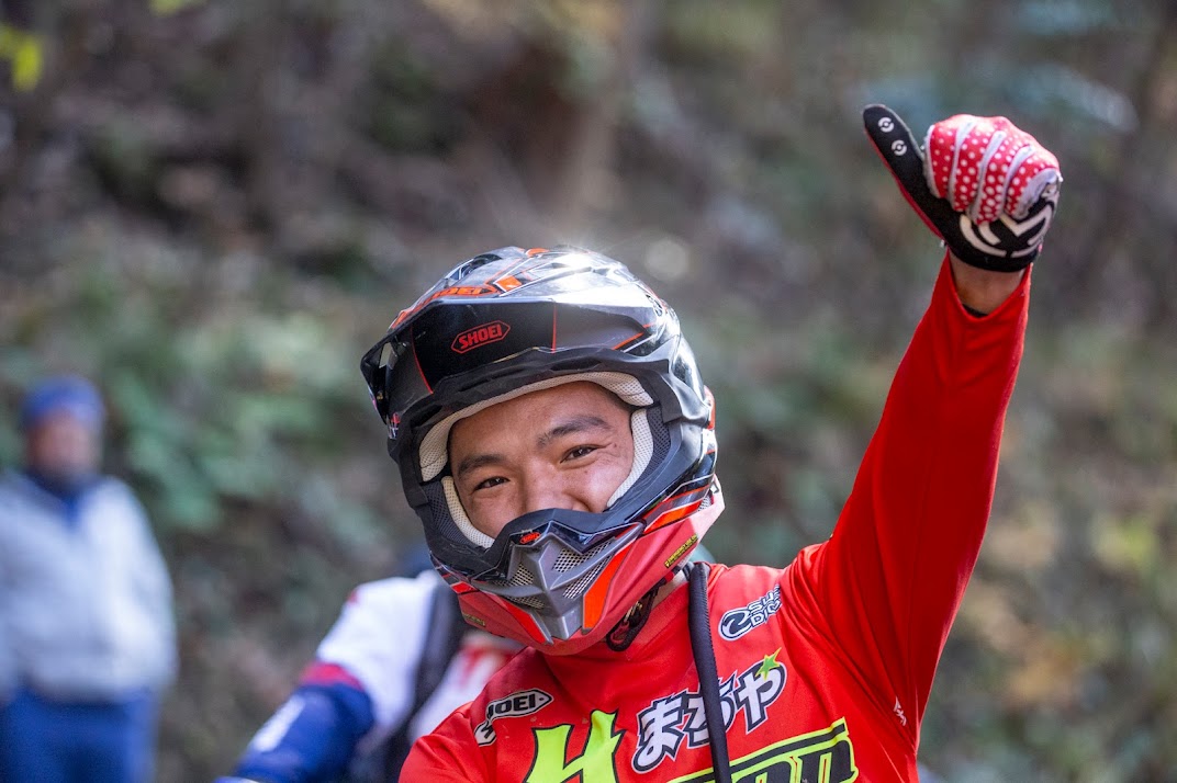 丸太とかちょっとした窪みとか細かいセクションがいーっぱいあるんですよ。そういうところトライアルの選手はすごく上手いんですけど僕らはミスったりバックしたりするから、ちょっとずつ疲れていくんですよね。本物のトライアルIASライダーや、憧れの田中太一さんの走りを間近で見られて、すごくタメになりましたし、その中に食い込めたことが本当に嬉しいです」