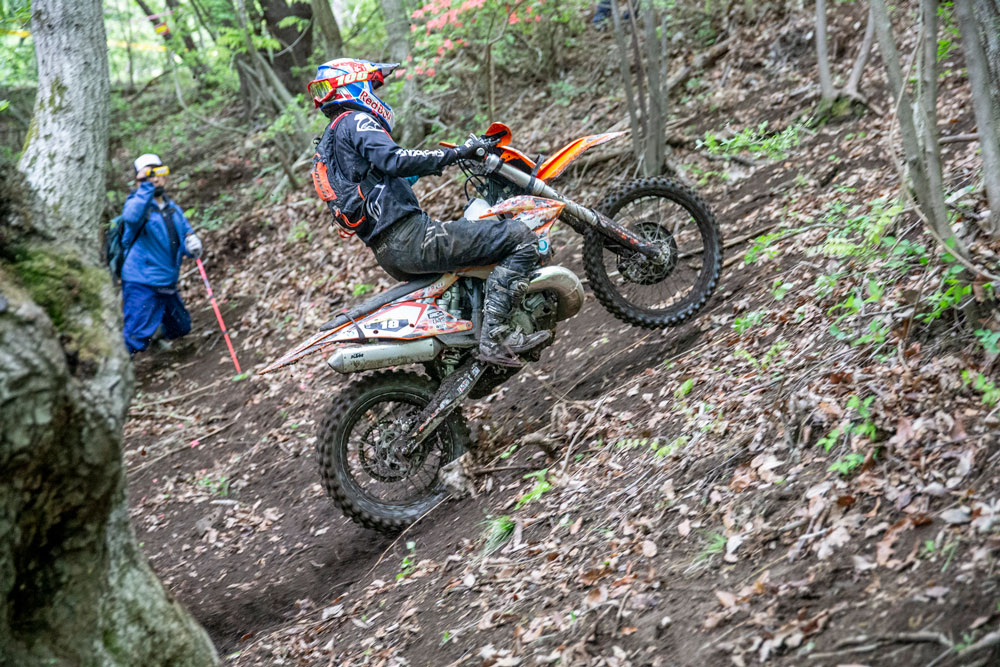 全日本選手権の優勝争いのワンシーンではあるが、そこはハードエンデューロ。山本は一度ZEROの隣に停車し、言葉を交わしてから再スタートする和やかさを見せる。そこからは山本が先頭を走り、ZEROが追いかける展開。しかし2周目のワイヤーマウンテンでZEROがミスを侵し、山本が大きくリードを広げることになった。そしてそのまま山本は2周目、3周目をトップで周回。4周目のワイヤーマウンテンを過ぎたところでレース時間終了を迎え、優勝を決めた。ZEROは山本を追走したものの、追いつくことなく2位でフィニッシュ。