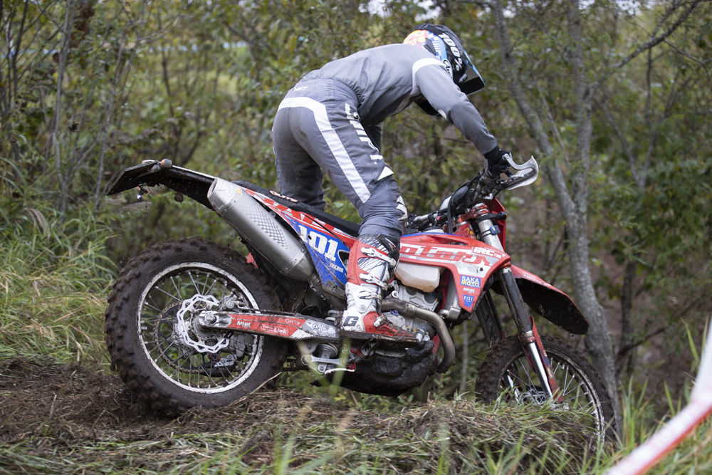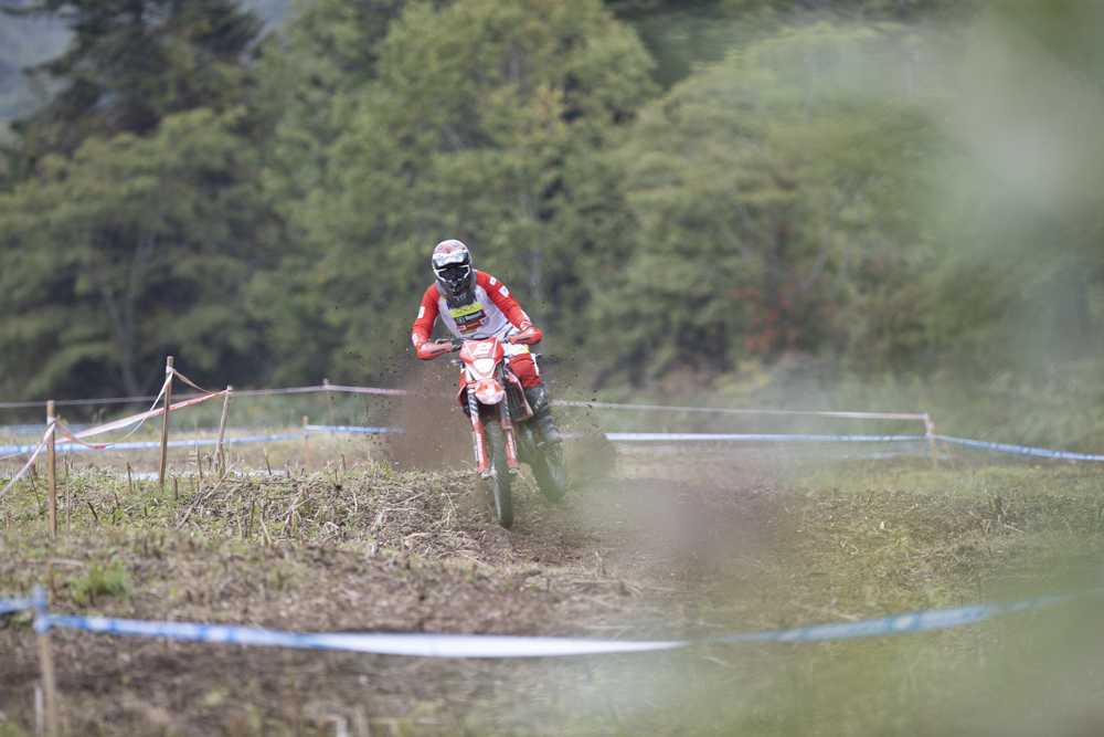 Day1で結果を出してきたのは第2戦SUGOを欠席し、追い上げのシーズンとなっている砂田。地元北海道のモトクロスIAライダーながら、エンデューロは1年目。2周目のイゾラETで好タイムを出してトップに出ると最後までそれをキープして初優勝を果たした。