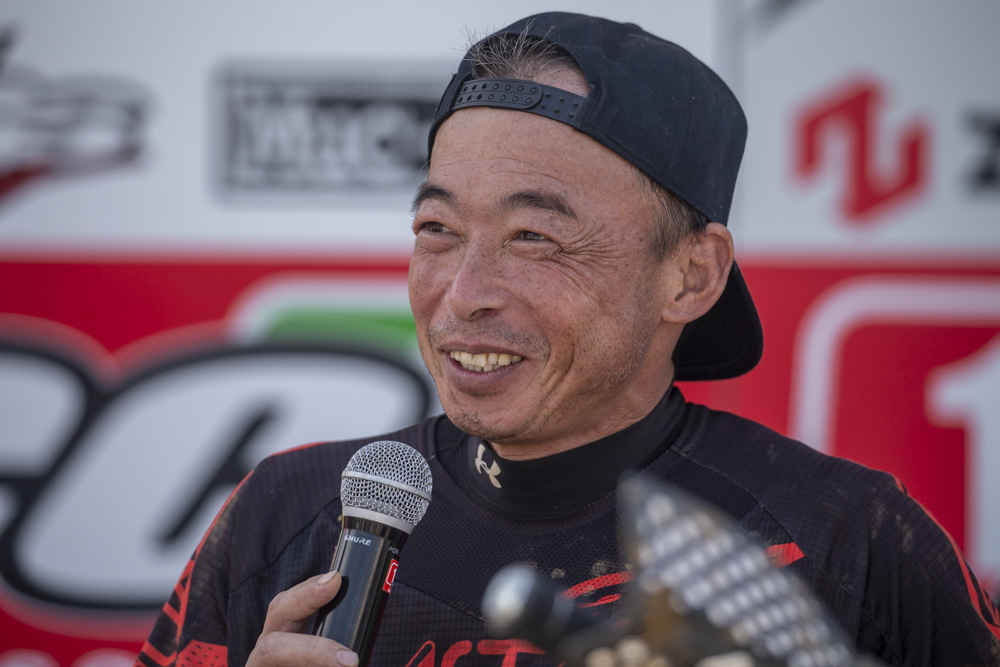 「去年はここの選手紹介(トップライダー入場時に行われるショータイム)でウイリーしたら失敗して膝を怪我しちゃって、さらに3回前転してしまったので、今日はずっと自分との勝負でした。今年は無転倒でレースを終えられて良かったです。うまくいけば次の八犬伝でチャンピオンが決まるので気を抜かずに頑張ります!」