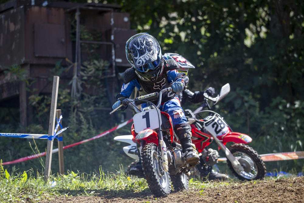 FUN-GPの表彰式が行われている裏ではヨツバモトや50ccマシンを駆るキッズたちによるFCXが開催。松尾颯太くん、中島悠稀くんがクラス優勝を飾った。JNCCでは次世代を担うライダーの育成にも力を入れている。