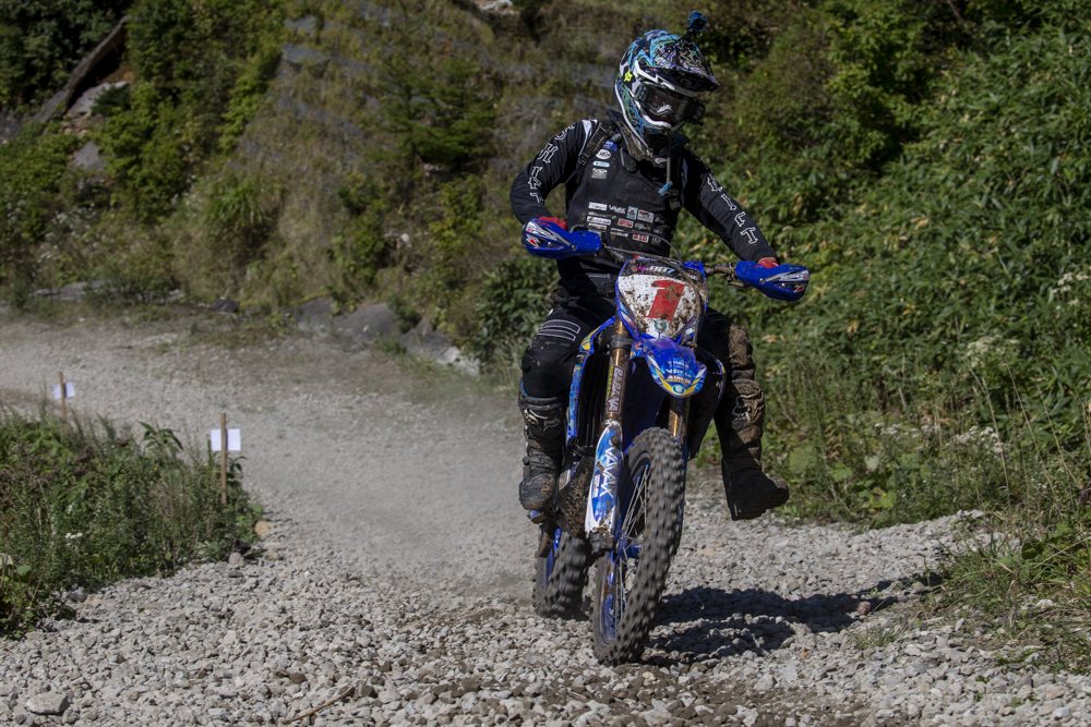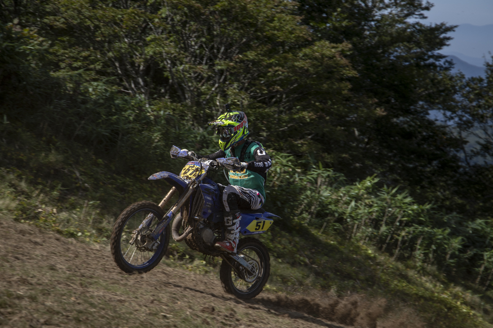 そろそろ初優勝も期待される成田亮はスタートでの出遅れから、1周目の「NOコントロール」でチェーントラブルに見舞われた。幸い「NOコントロール」からは下りのみでピットに戻れたため、修理してレースに復帰したものの、20分ほどのロス。その後の追い上げも及ばずクラス17位でレースを終えた。