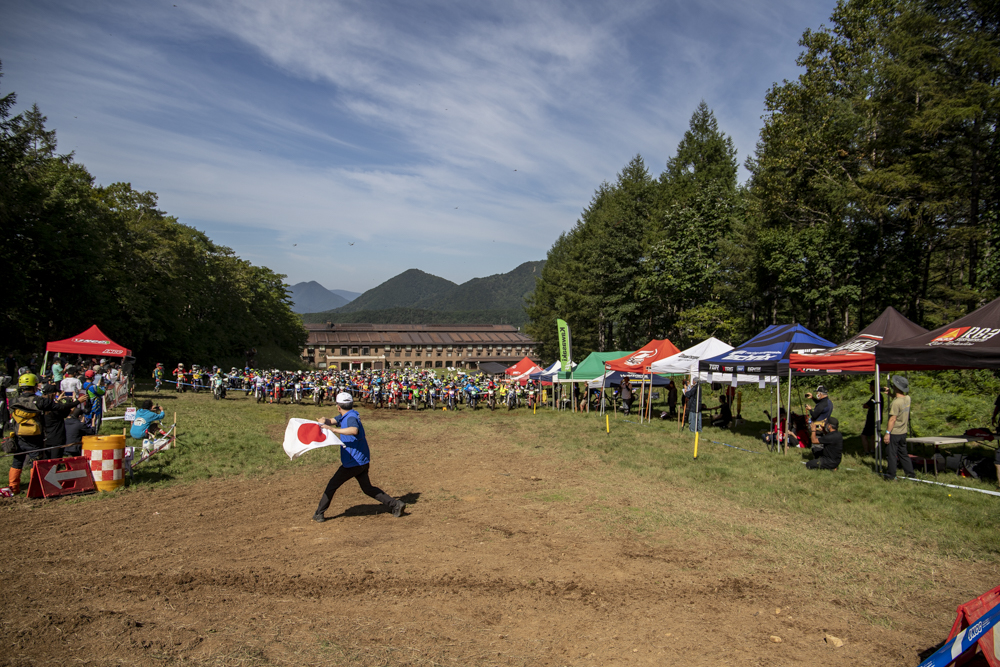 そしてメインイベントのCOMP-GP。FUN-GPでは回避された激下り「NOコントロール」が使われ、しかも去年よりも一段上から下る新ルートが追加された。なお、今大会は全日本モトクロス選手権と日程が重なったため、渡辺学、熱田孝高が不在のレースとなった。